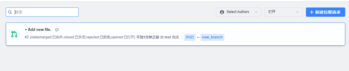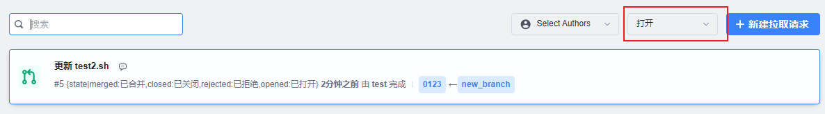 我们可以根据创建者和状态筛选对应选项的合并请求