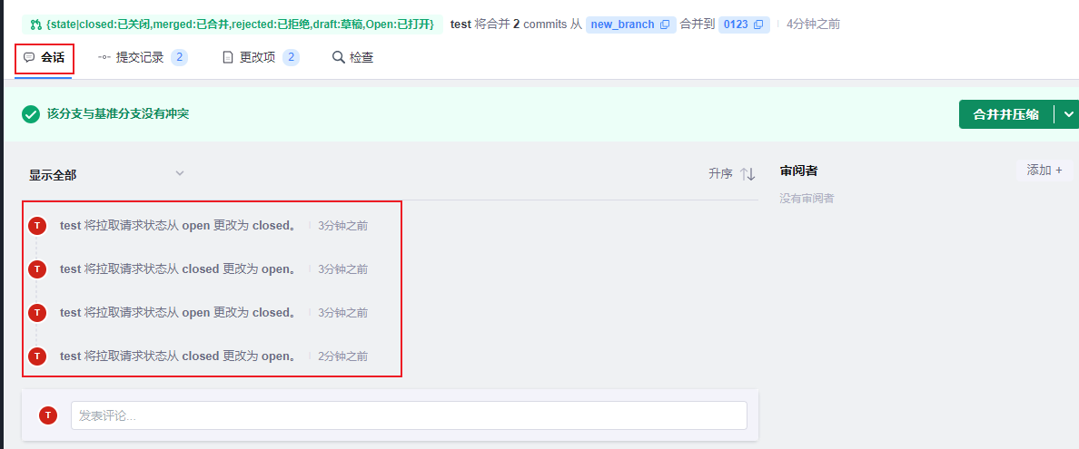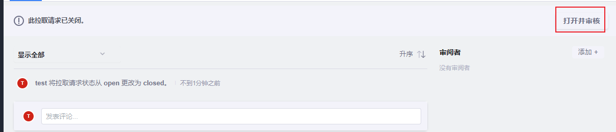 关闭的拉取请求可以点击打开并审核按钮变为打开状态的拉取请求