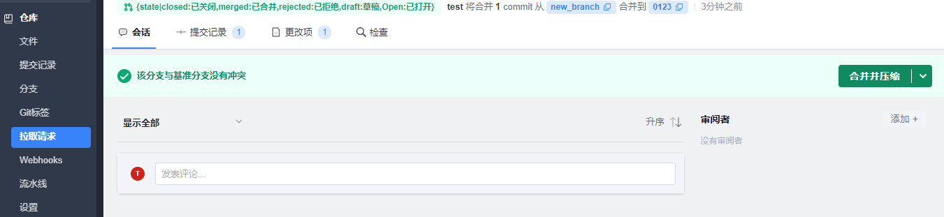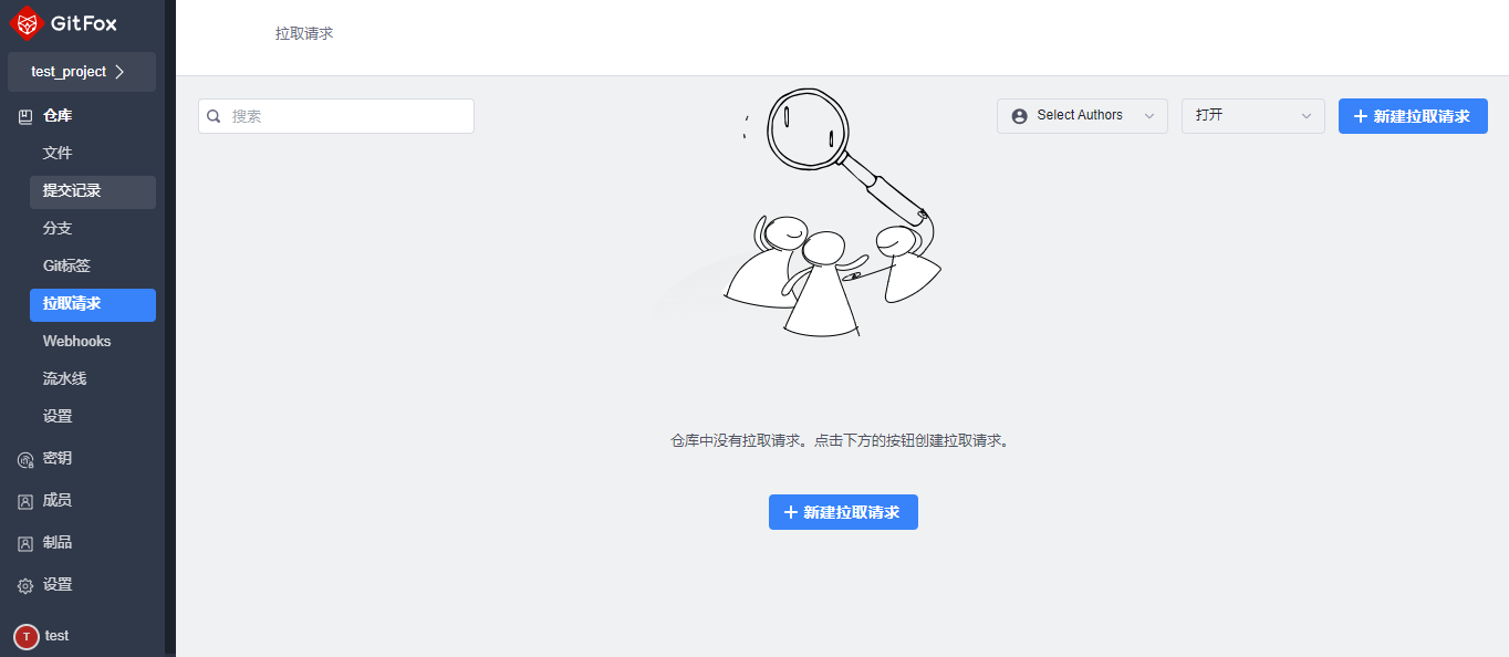 当没有请求时,会提示当前没有请求,并显示新建拉取请求按钮