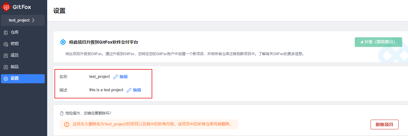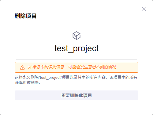 可以删除项目,但是注意,删除项目后,项目和项目下的仓库无法还原