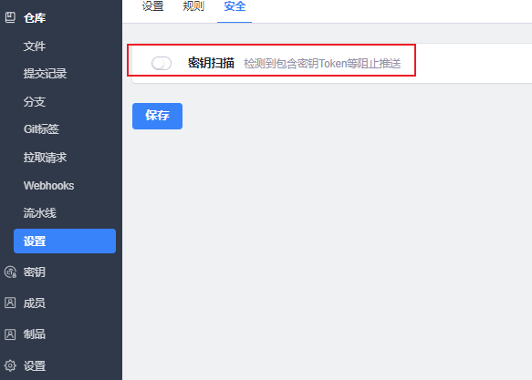 在设置导航下的安全tab页下,可以设置密钥扫描