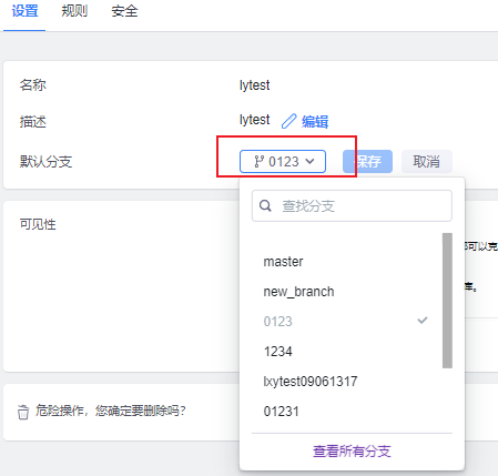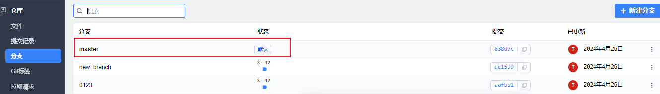 我们设置为master后,分支列表中对应分支就会显示成默认分支