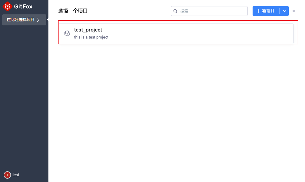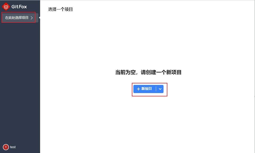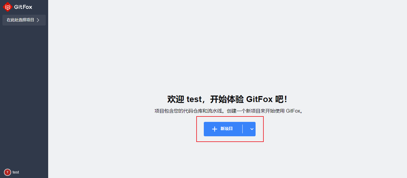 用户登录GitFox后,如果当前用户没有自己创建的项目且没有加入别的用户创建的项目,首页会显示创建项目按钮