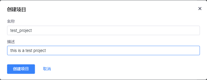 点击新项目按钮后,弹出创建项目页面,输入名称和描述(可选),点击创建项目按钮,项目就创建成功了
